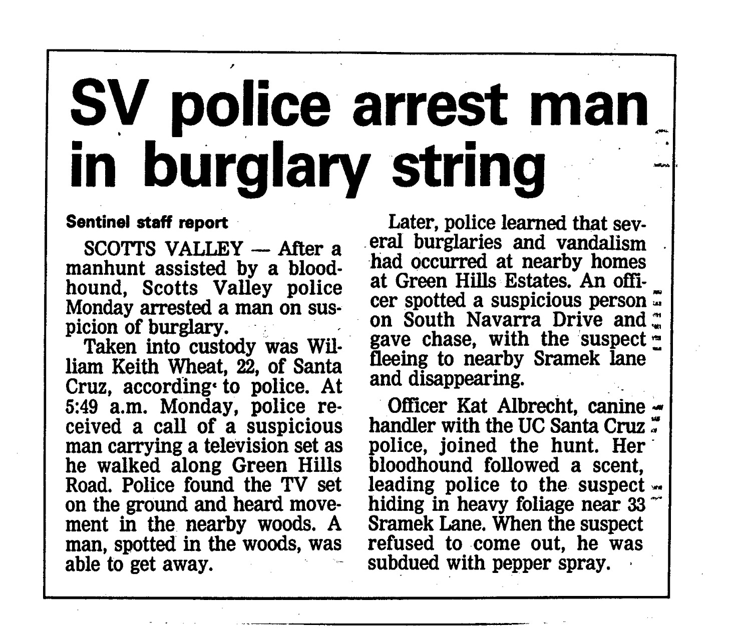 In this post, I pull back the curtain on training dogs to find lost pets. My knowledge in this area started back in 1989, when I trained my Weimaraner, Rachel, as a cadaver dog. Then, in 1991, I added police bloodhound training to my toolbox, aiming to become a sworn police bloodhound handler. I achieved that goal in 1993 when I was hired as a police officer (in Santa Cruz, California) and began using my bloodhound A.J. on missing-person and criminal cases. In his first search, A.J. had a “walk-up find” of an elderly Alzheimer’s patient. That success led to our being called out on many police investigations, like the one in the story below, which resulted in A.J. finding (and the officers capturing) a burglary suspect.